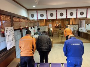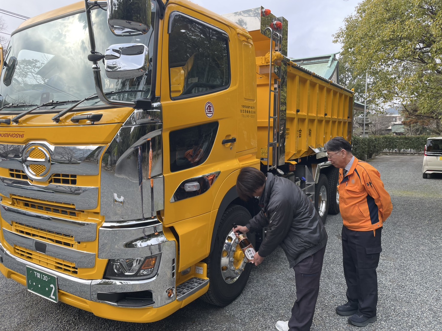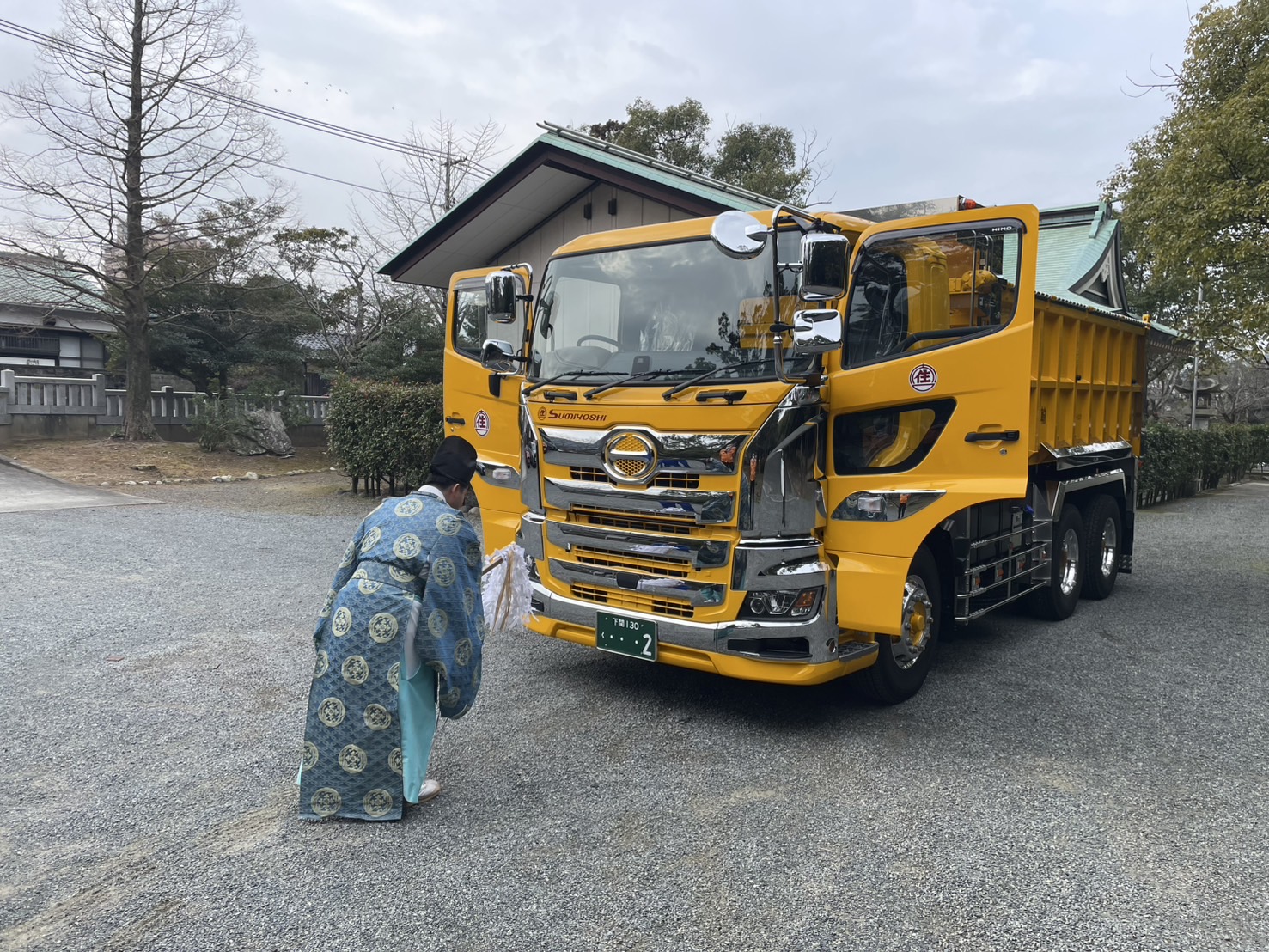 この度、ダンプトラック(日野自動車製)を新しく購入し、住吉神社で安全祈願を行いました。