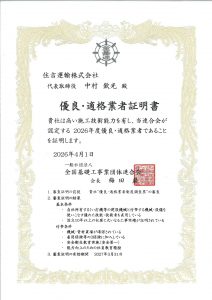 この度、当社は全国基礎工事業団体連合会より優良・適格業者の認定を受けました。(更新認定)
